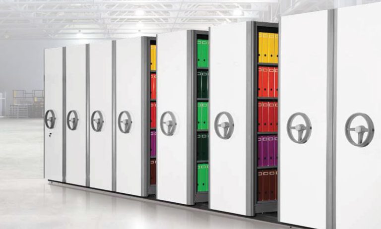 Our mechanical wheel type mobile compactor is designed using different gear ratio so that the cabinet can be moved by generally turning the handwheel.